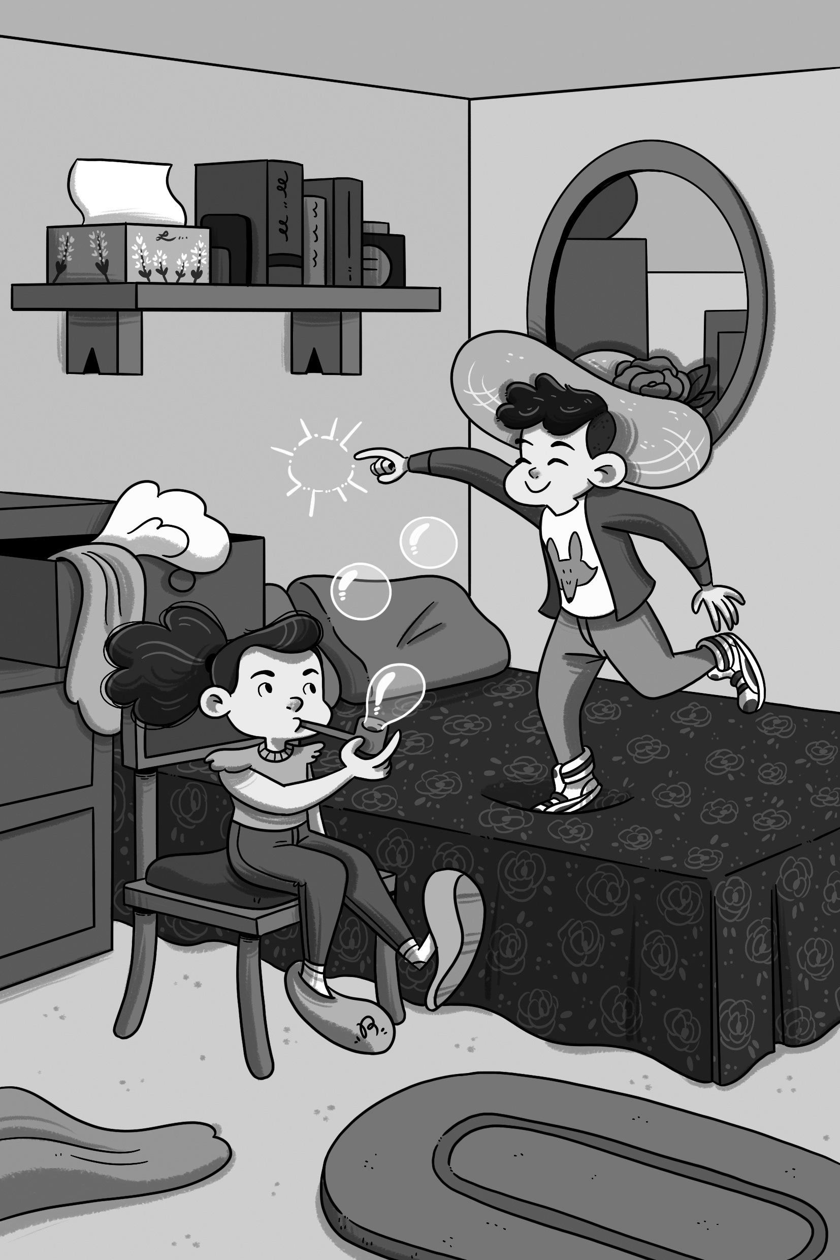 This was the second book I illustrated starting my favorite grandma. This time she finds a genie who has lost his bottle. She keeps trying to find him a new home but her grandchildren are not making it easy.