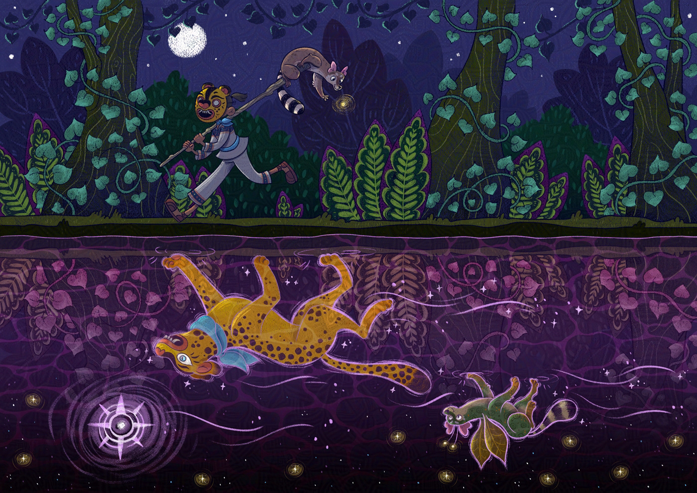 This illustrations are part of a personal project. Diego is a boy who turns into a jaguar when he finds a magical mask.